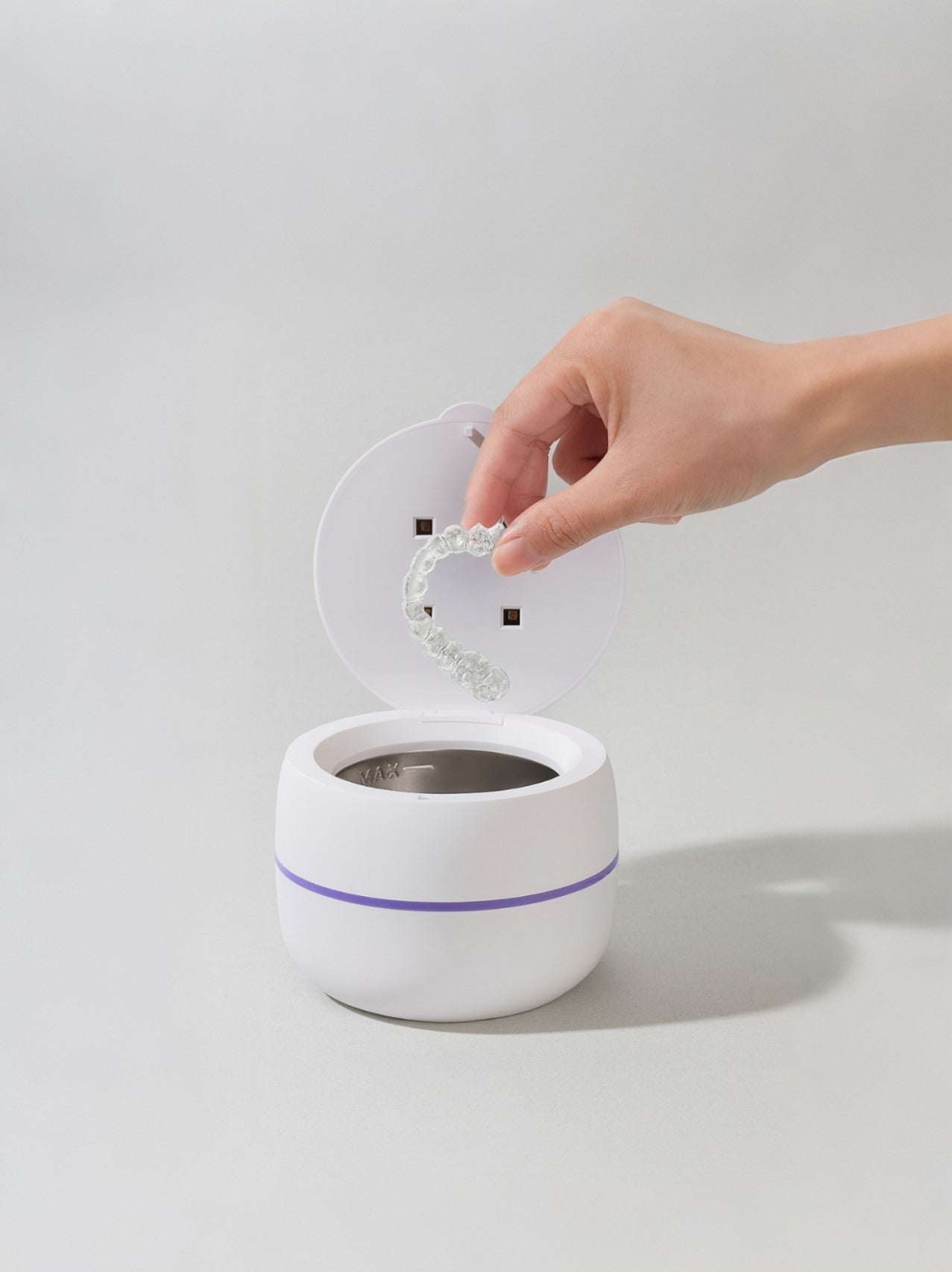 Unlike harsh cleaning tablets or chemical solutions, Odentrix™ relies solely on ultrasonic waves and UV-C light. This ensures your retainers, aligners, or dentures are cleaned thoroughly without abrasive damage or harmful residues. Gentle yet powerful, it’s safe for daily use and keeps your appliances fresh, hygienic, and completely worry-free.